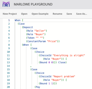 さらにMarloweは、一般開発言語より安全に金融契約の構築が可能である。エラーが起きやすいプログラムを書くことができない構造になっているほか、契約を実行せずに契約内容を完全に分析できるように開発されている。
